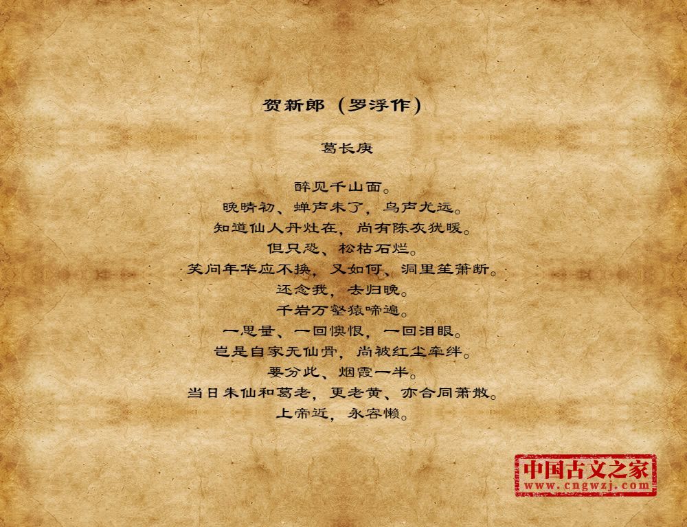 醉见千山面。晚晴初、蝉声未了,鸟声尤远。知道仙人丹灶在,尚有陈灰犹暖。但只恐、松枯石烂。笑问年华应不换,又如何、洞里笙箫断。还念我,去归晚。千岩万壑猿啼遍。一思量、一回懊恨,一回泪眼。岂是自家无仙骨,尚被红尘牵绊。要分此、烟霞一半。当日朱仙和葛老,更老黄、亦合同萧散。上帝近,永容懒。