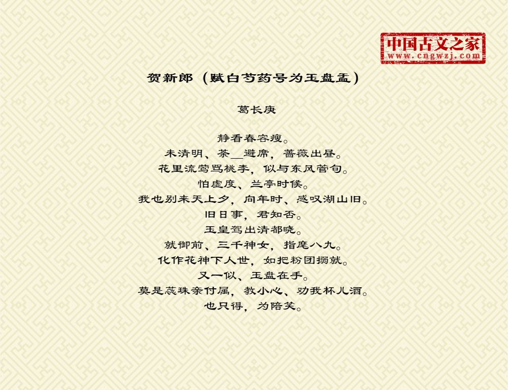 《贺新郎(赋白芍药号为玉盘盂)》的原文打印版(葛长庚)