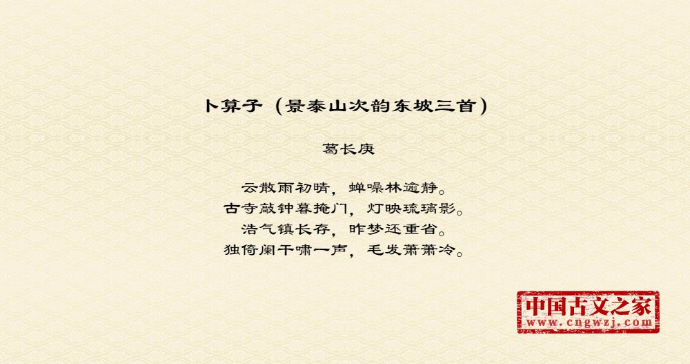 《卜算子(景泰山次韵东坡三首)》的原文打印版(葛长庚)