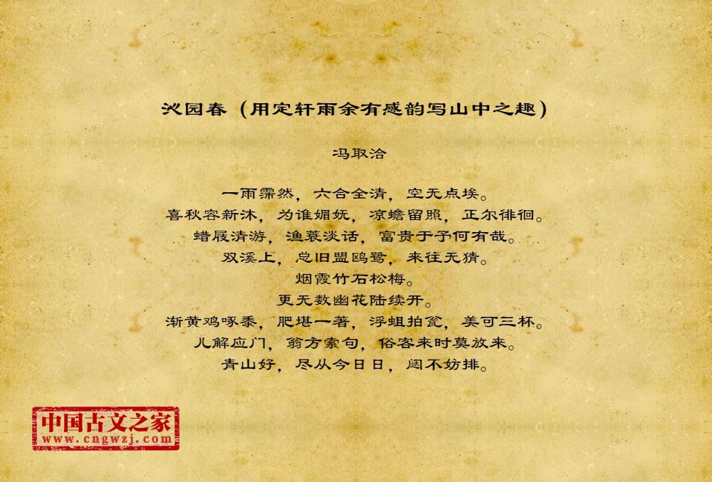 《沁园春(用定轩雨余有感韵写山中之趣)》的原文打印版(冯取洽)