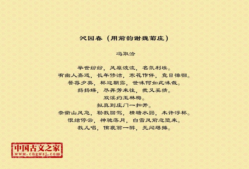 《沁园春(用前韵谢魏菊庄)》的原文打印版(冯取洽)