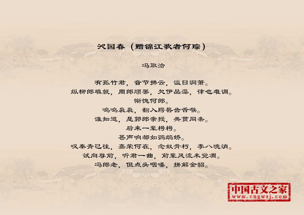 《沁园春(赠锦江歌者何琮)》的原文打印版(冯取洽)