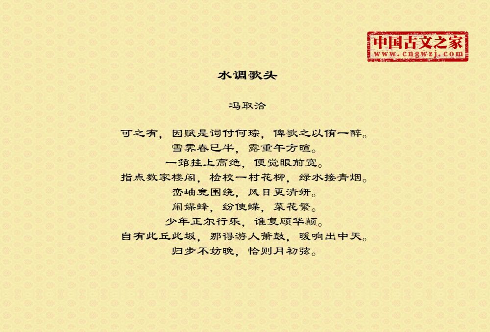 可之有,因赋是词付何琮,俾歌之以侑一醉。雪霁春已半,露重午方暄。一筇挂上高绝,便觉眼前宽。指点数家楼阁,检校一村花柳,绿水接青烟。峦岫竞围绕,风日更清妍。闹媒蜂,纷使蝶,菜花繁。少年正尔行乐,谁复顾华颠。自有此丘此坂,那得游人箫鼓,暖响出中天。归步不妨晚,恰则月初弦。