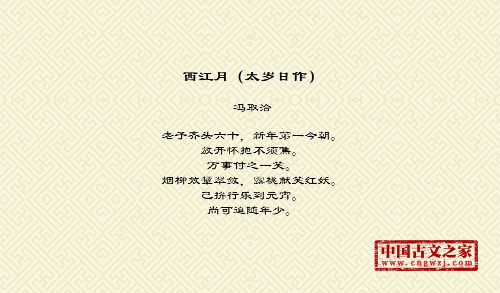 《西江月(太岁日作)》的原文打印版(冯取洽)