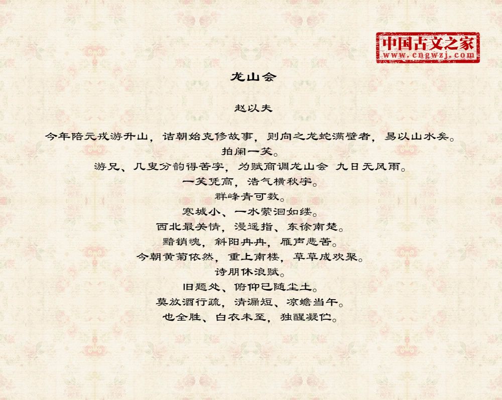 游兄、几叟分韵得苦字,为赋商调龙山会