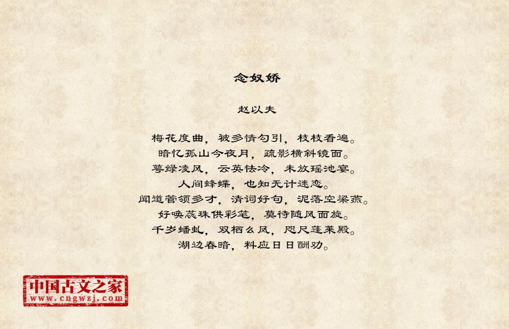 赵以夫(一一八九~一二五六),字用父,号虚斋。居长乐(今属福建)。宁宗嘉定十年(一二一七)进士。知监利县。理宗端平初知漳州。嘉熙初以枢密都丞旨兼国史院