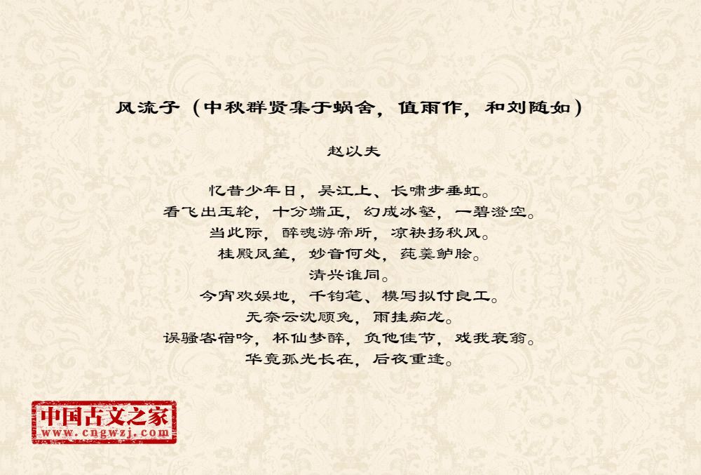 《风流子(中秋群贤集于蜗舍,值雨作,和刘随如)》的原文打印版(赵以夫)