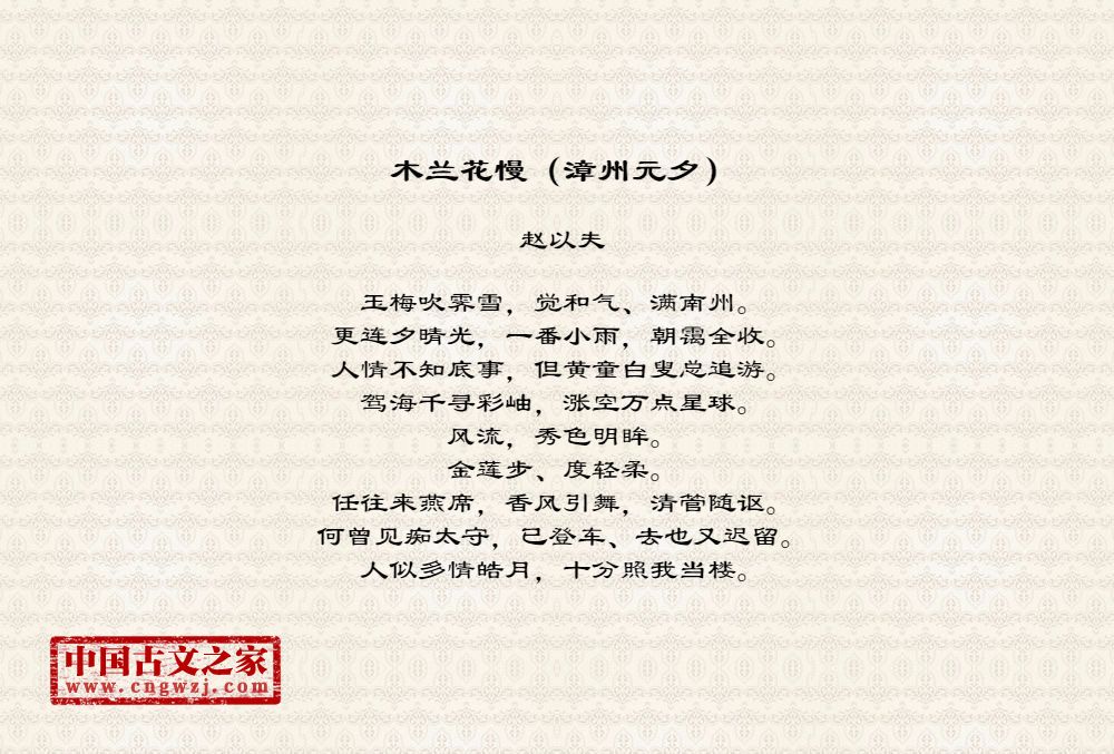 赵以夫(一一八九~一二五六),字用父,号虚斋。居长乐(今属福建)。宁宗嘉定十年(一二一七)进士。知监利县。理宗端平初知漳州。嘉熙初以枢密都丞旨兼国史院