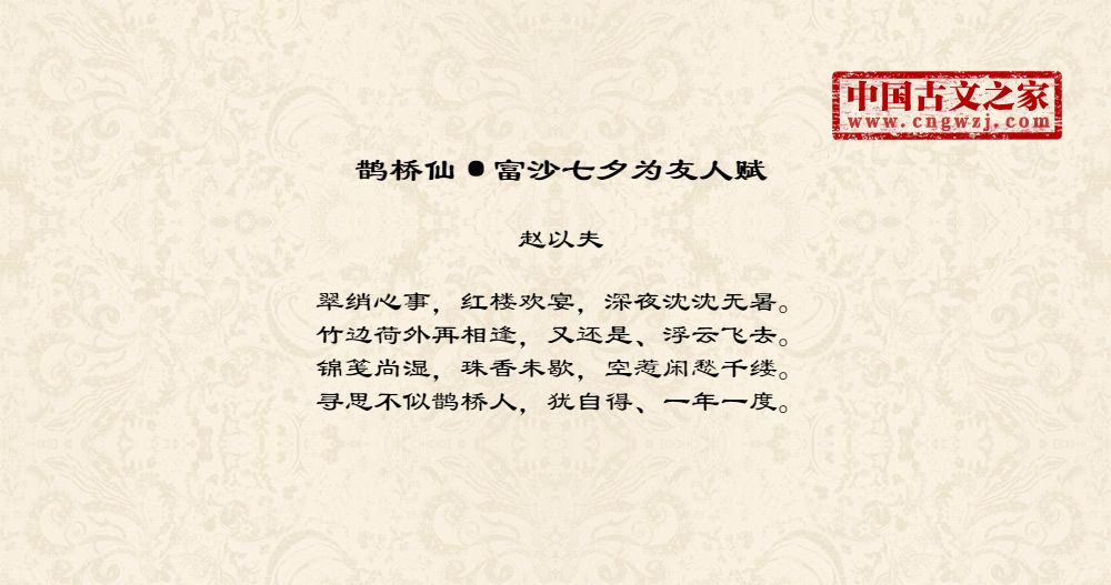 《鹊桥仙·富沙七夕为友人赋》由赵以夫创作