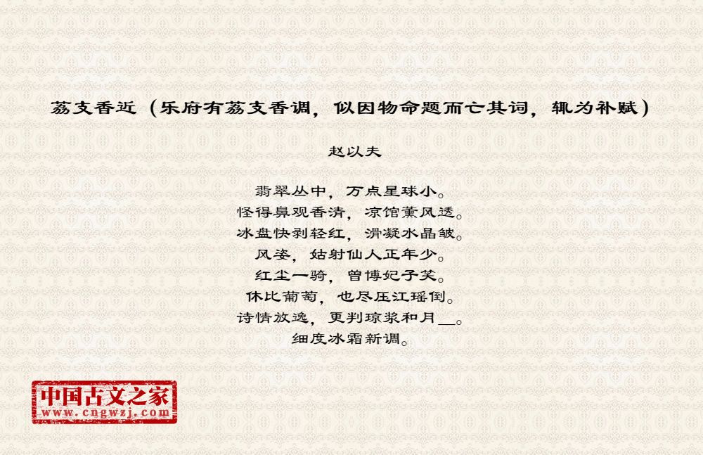 《荔支香近(乐府有荔支香调,似因物命题而亡其词,辄为补赋)》由赵以夫创作