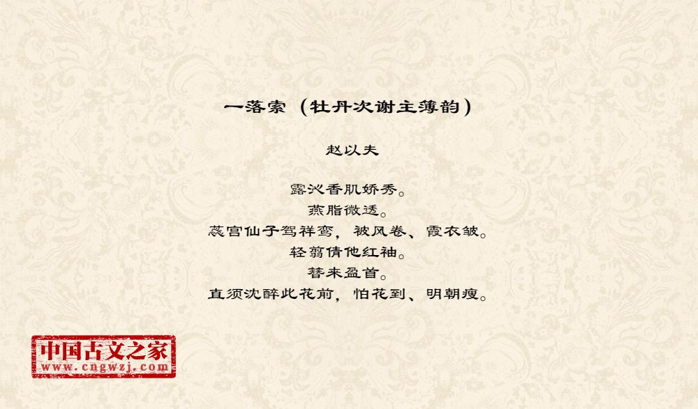 《一落索(牡丹次谢主簿韵)》由赵以夫创作