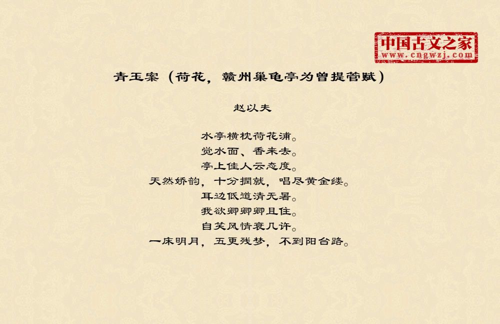 《青玉案(荷花,赣州巢龟亭为曾提管赋)》的原文打印版(赵以夫)