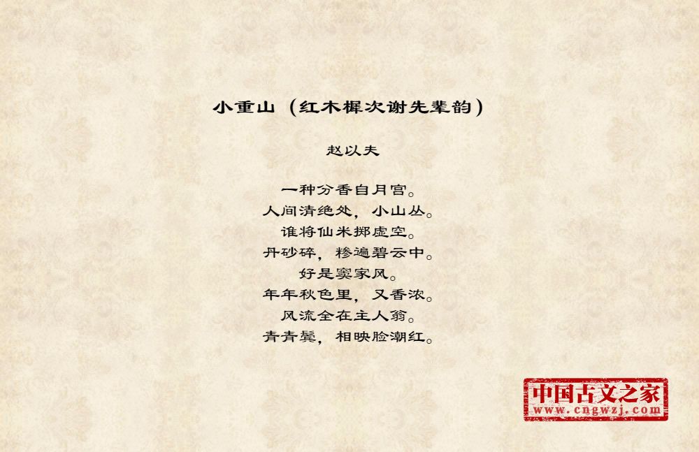 《小重山(红木樨次谢先辈韵)》由赵以夫创作