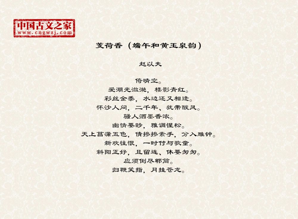 《芰荷香(端午和黄玉泉韵)》由赵以夫创作