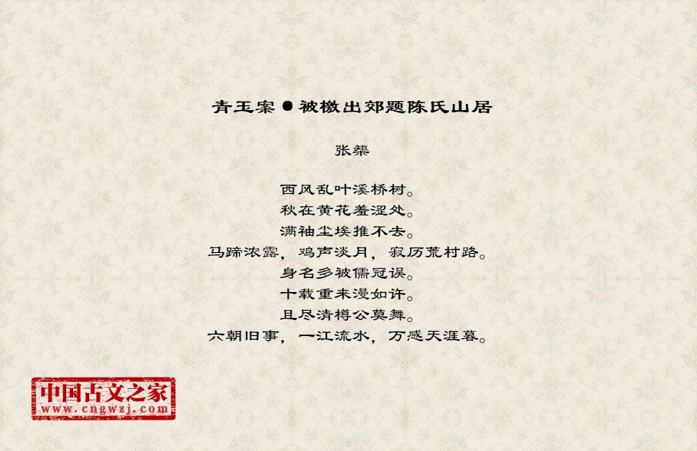 《青玉案·被檄出郊题陈氏山居》的原文打印版(张榘)