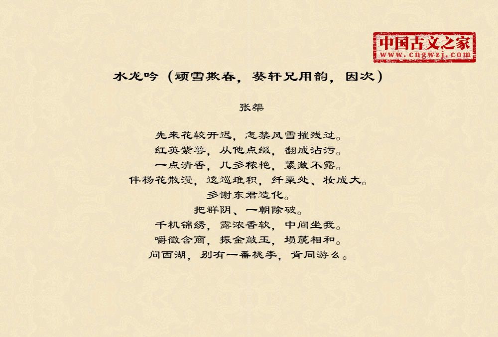 《水龙吟(顽雪欺春,葵轩兄用韵,因次)》的原文打印版(张榘)