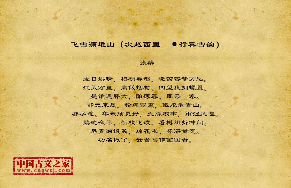 《飞雪满堆山(次赵西里_·行喜雪韵)》的原文打印版(张榘)