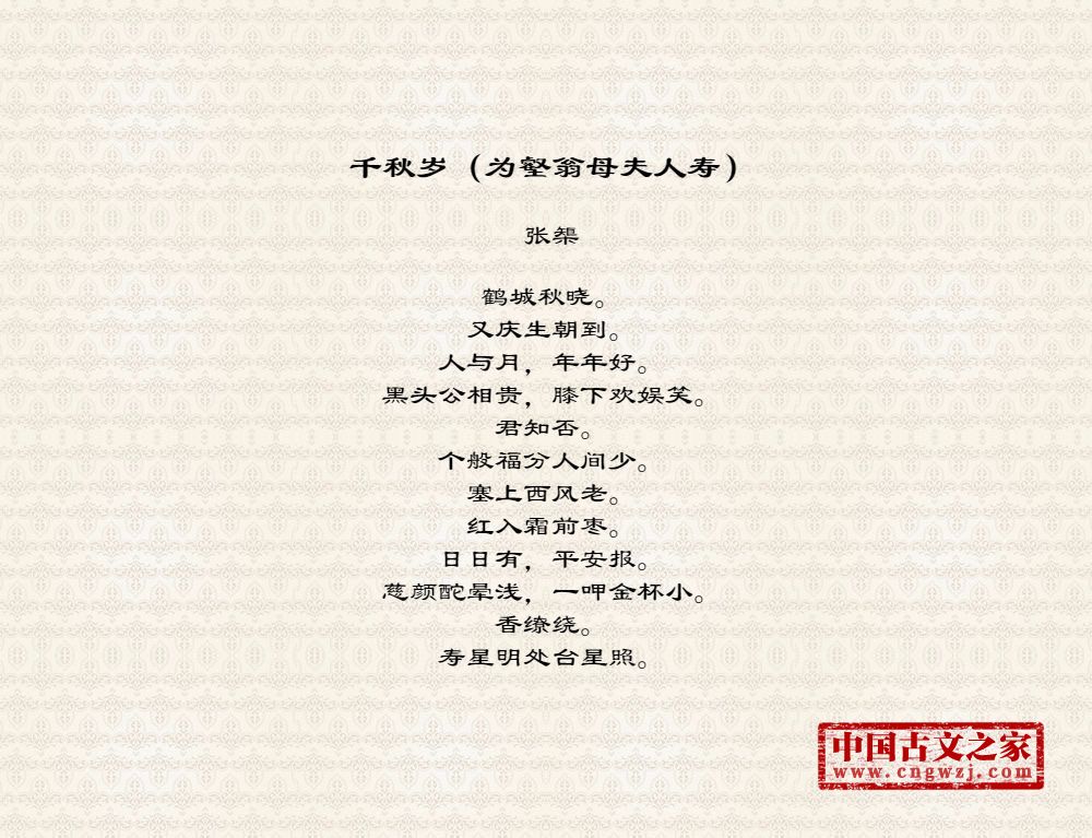 《千秋岁(为壑翁母夫人寿)》的原文打印版(张榘)
