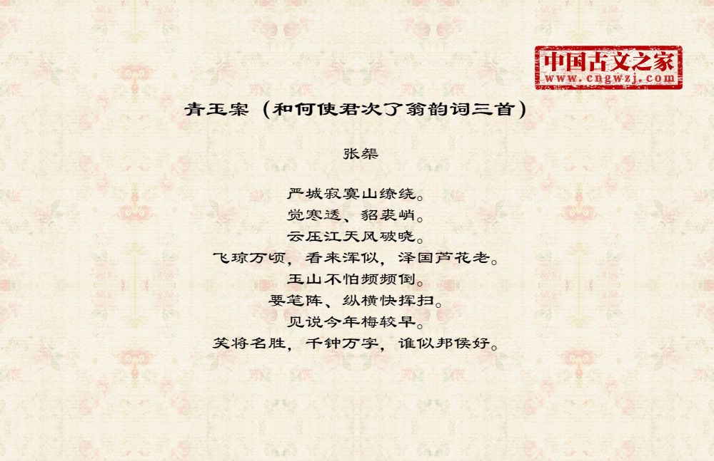 《青玉案(和何使君次了翁韵词三首)》的原文打印版(张榘)