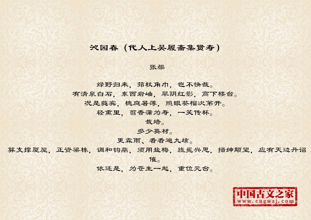 《沁园春(代人上吴履斋集贤寿)》的原文打印版(张榘)