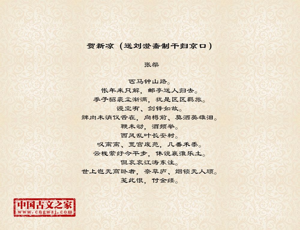 《贺新凉(送刘澄斋制干归京口)》的原文打印版(张榘)