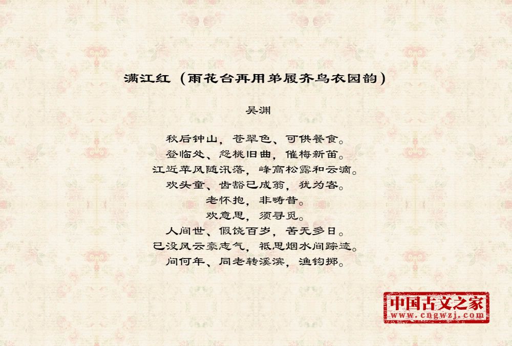 《满江红(雨花台再用弟履齐鸟衣园韵)》由吴渊创作