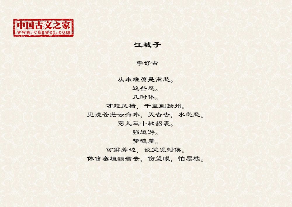 《江城子》的原文打印版(李好古)