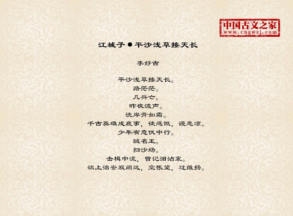 《江城子·平沙浅草接天长》的原文打印版(李好古)