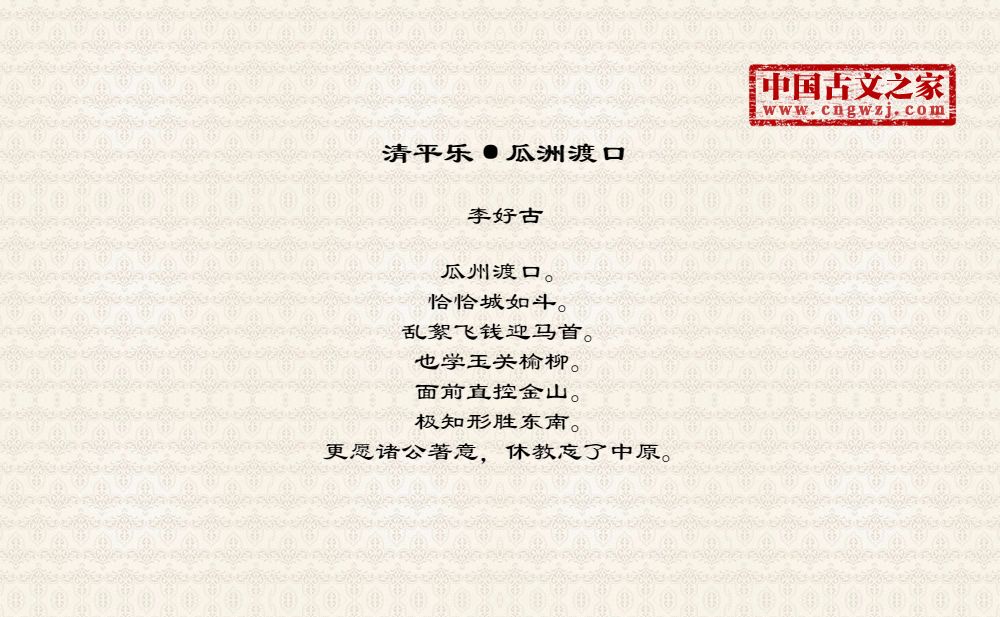 《清平乐·瓜洲渡口》的原文打印版(李好古)