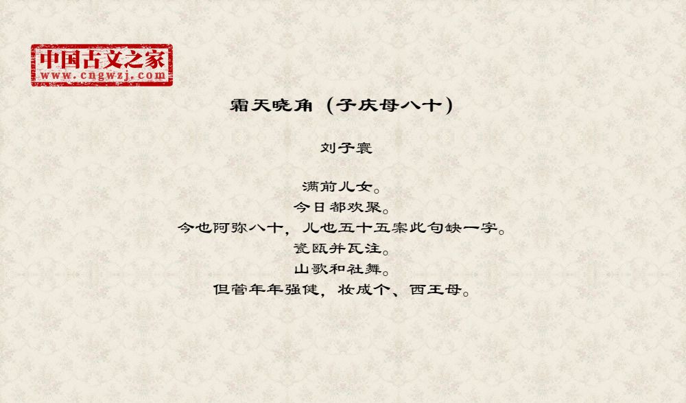 《霜天晓角(子庆母八十)》由刘子寰创作
