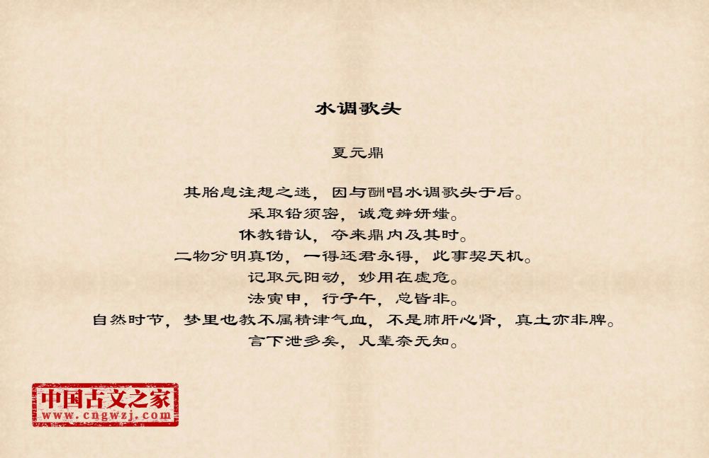 其胎息注想之迷,因与酬唱水调歌头于后。采取铅须密,诚意辨妍媸。休教错认,夺来鼎内及其时。二物分明真伪,一得还君永得,此事契天机。记取元阳动,妙用在虚危。法寅申,行子午,总皆非。自然时节,梦里也教不属精津气血,不是肺肝心肾,真土亦非脾。言下泄多矣,凡辈奈无知。
