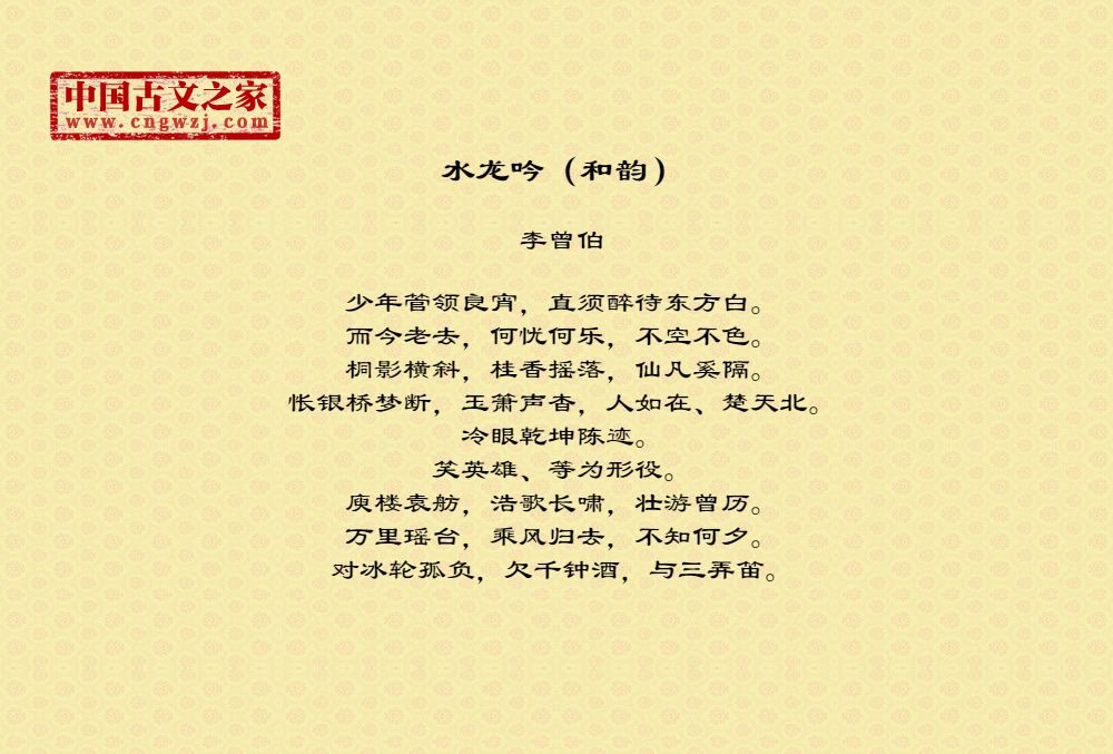 李曾伯(1198~1265至1275间)南宋词人。字长孺,号可斋。原籍覃怀(今河南沁阳附近)。南渡后寓居嘉兴(今属浙江)。