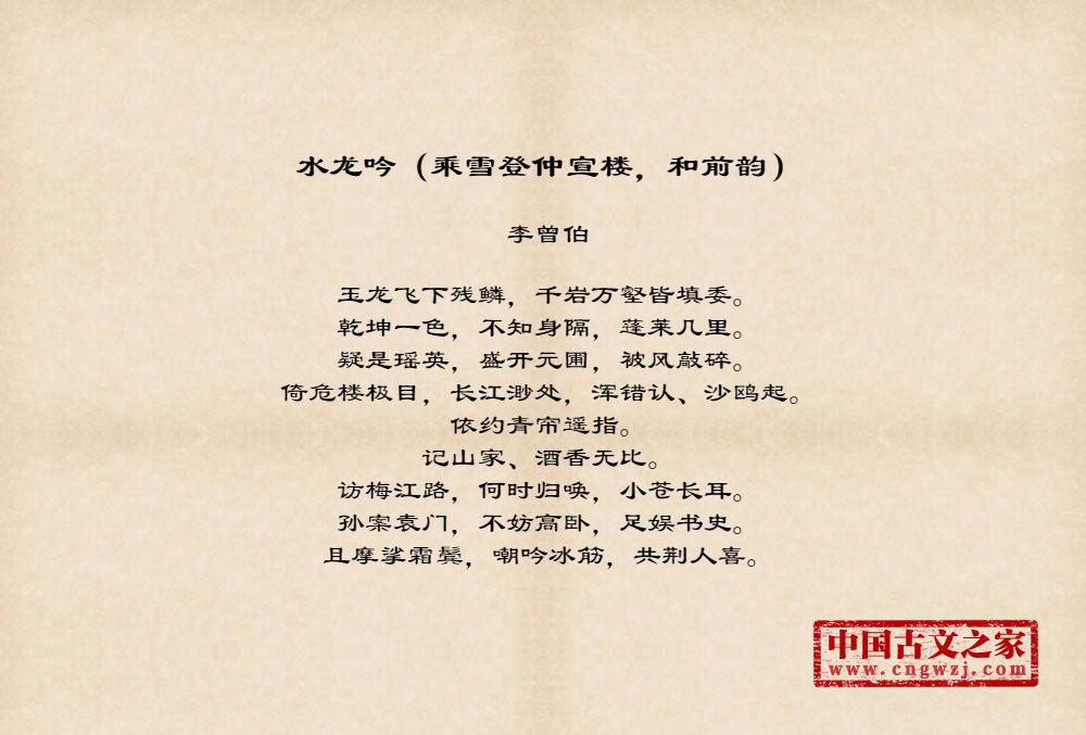 《水龙吟(乘雪登仲宣楼,和前韵)》由李曾伯创作