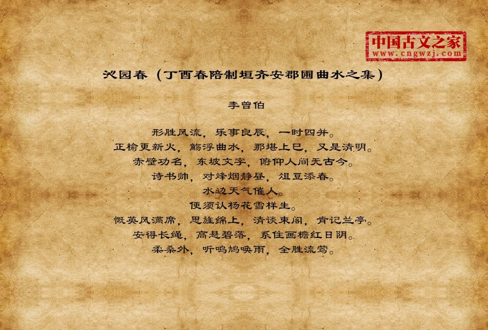 《沁园春(丁酉春陪制垣齐安郡圃曲水之集)》的原文打印版(李曾伯)