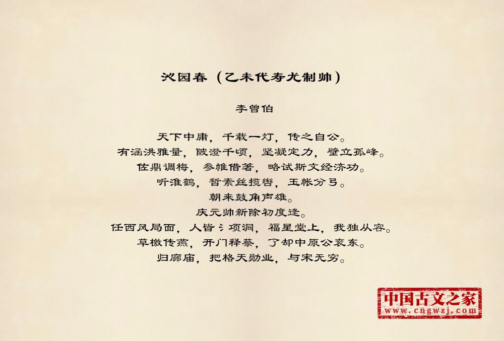《沁园春(乙未代寿尤制帅)》的原文打印版(李曾伯)