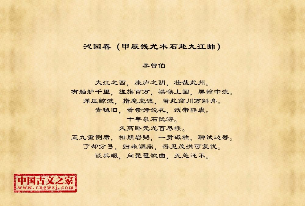 《沁园春(甲辰饯尤木石赴九江帅)》由李曾伯创作