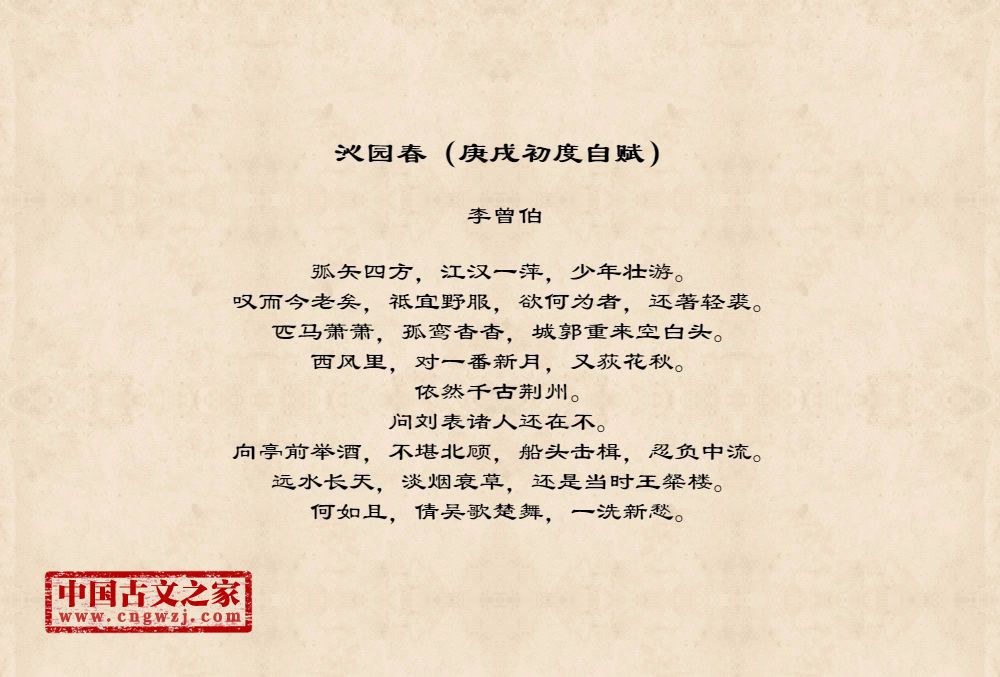 李曾伯(1198~1265至1275间)南宋词人。字长孺,号可斋。原籍覃怀(今河南沁阳附近)。南渡后寓居嘉兴(今属浙江)。