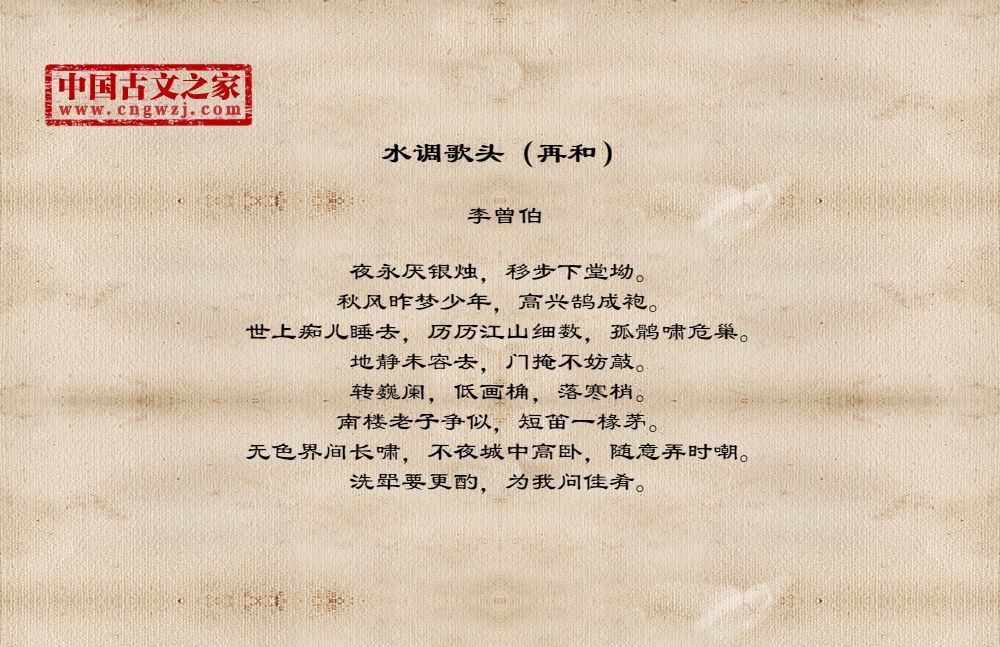 李曾伯(1198~1265至1275间)南宋词人。字长孺,号可斋。原籍覃怀(今河南沁阳附近)。南渡后寓居嘉兴(今属浙江)。