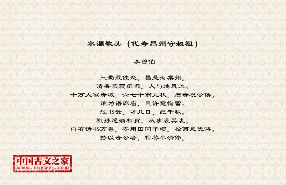 《水调歌头(代寿昌州守叔祖)》的原文打印版(李曾伯)