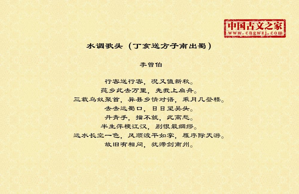 《水调歌头(丁亥送方子南出蜀)》的原文打印版(李曾伯)