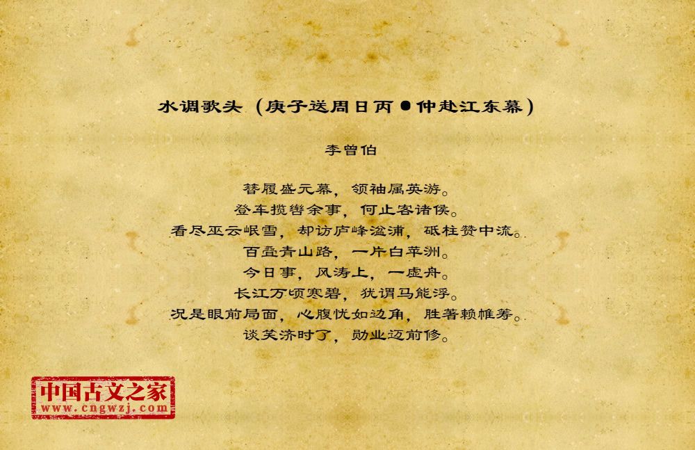 《水调歌头(庚子送周日丙·仲赴江东幕)》由李曾伯创作