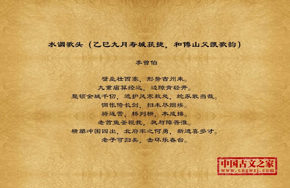 《水调歌头(乙巳九月寿城获捷,和傅山父凯歌韵)》由李曾伯创作