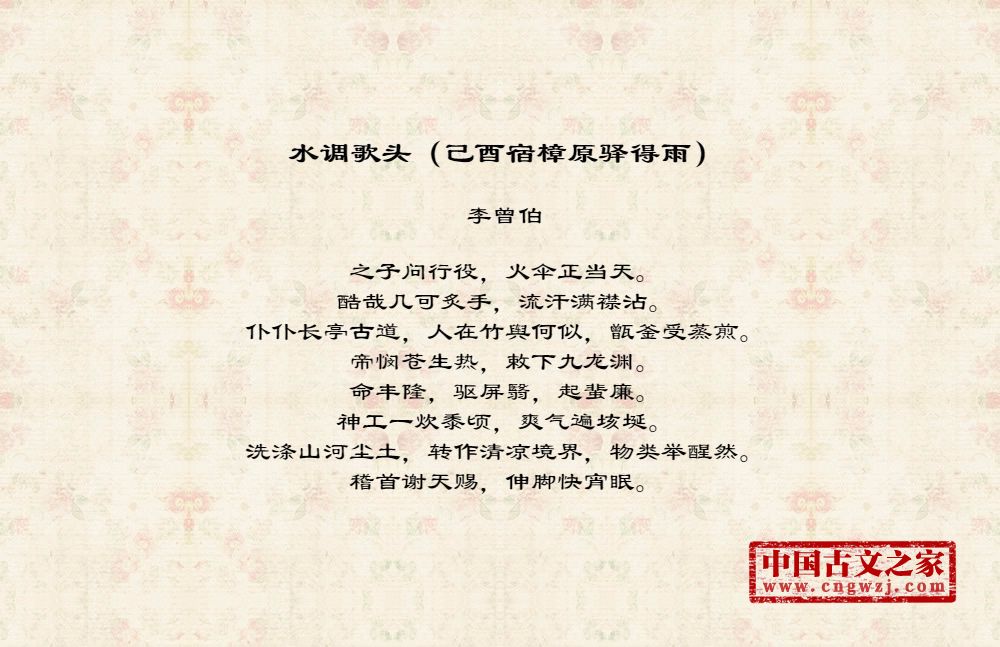 《水调歌头(己酉宿樟原驿得雨)》的原文打印版(李曾伯)