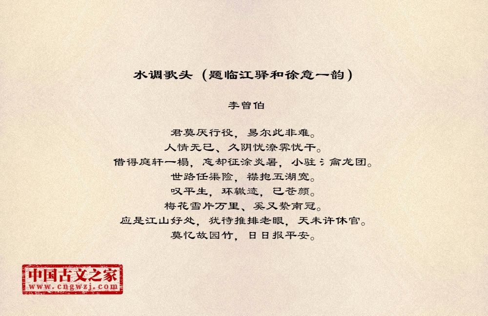 《水调歌头(题临江驿和徐意一韵)》的原文打印版(李曾伯)