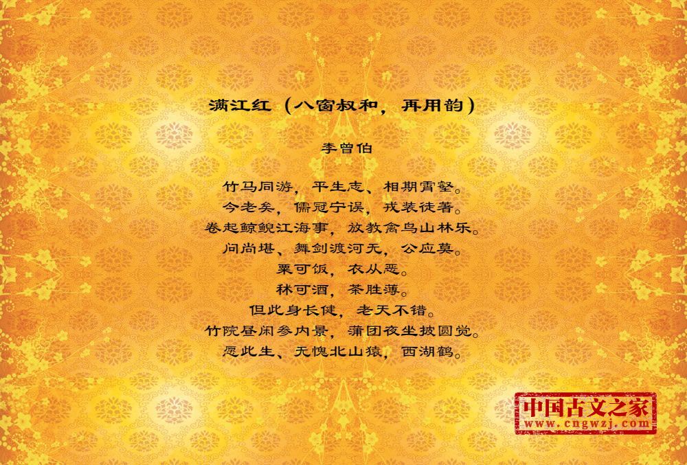 《满江红(八窗叔和,再用韵)》的原文打印版(李曾伯)