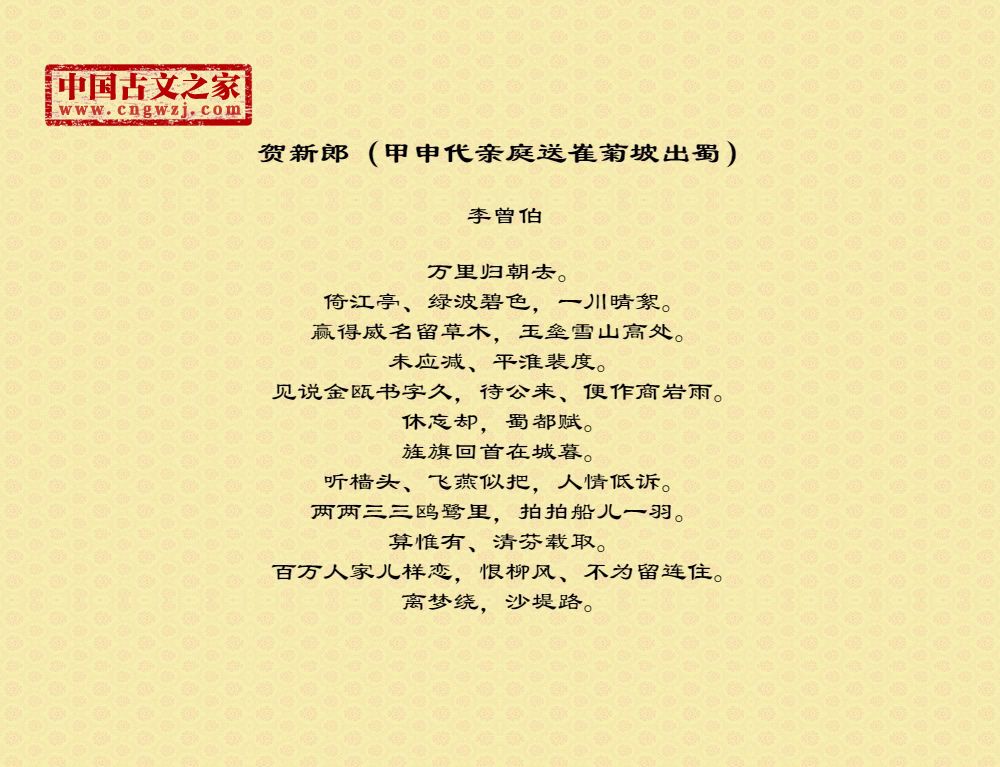 《贺新郎(甲申代亲庭送崔菊坡出蜀)》由李曾伯创作