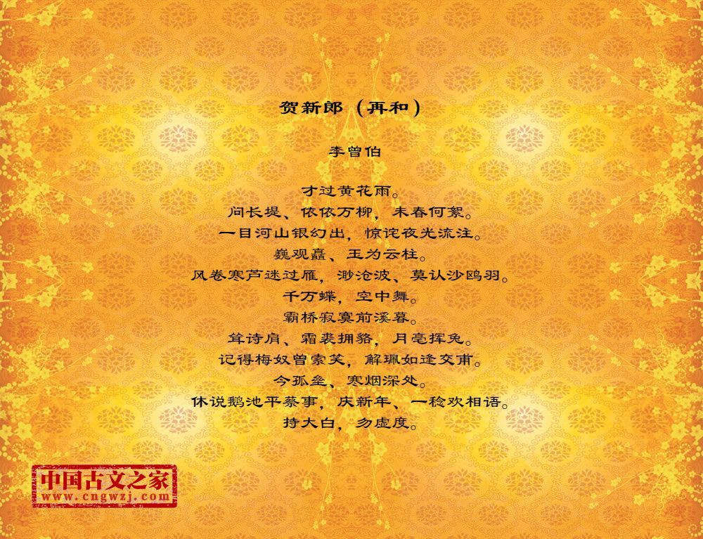 李曾伯(1198~1265至1275间)南宋词人。字长孺,号可斋。原籍覃怀(今河南沁阳附近)。南渡后寓居嘉兴(今属浙江)。