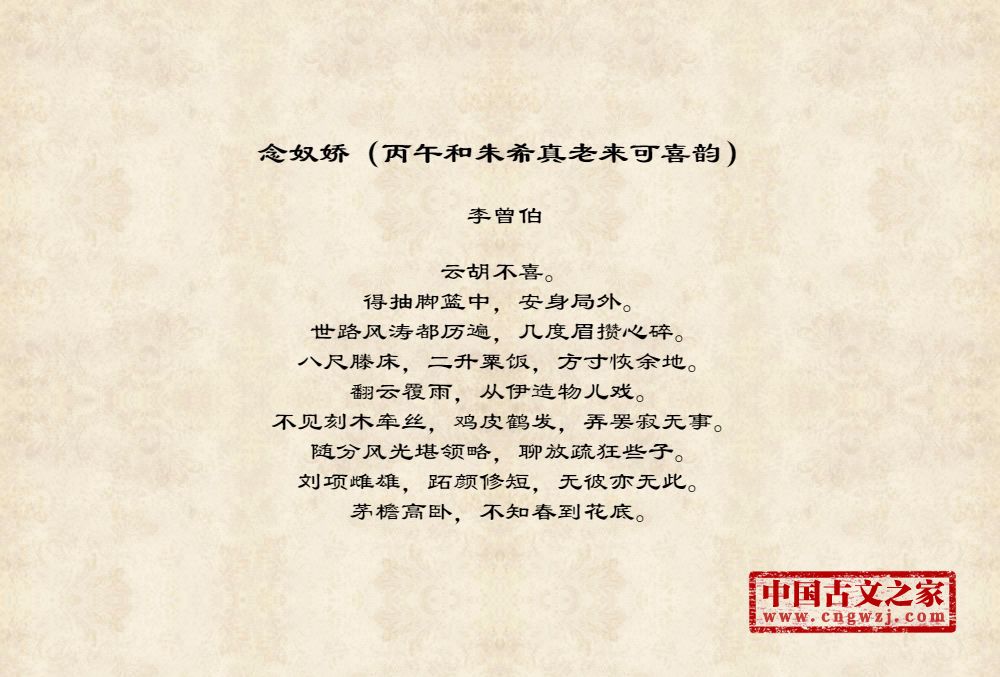 《念奴娇(丙午和朱希真老来可喜韵)》由李曾伯创作
