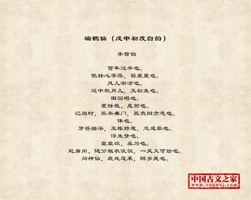 李曾伯(1198~1265至1275间)南宋词人。字长孺,号可斋。原籍覃怀(今河南沁阳附近)。南渡后寓居嘉兴(今属浙江)。