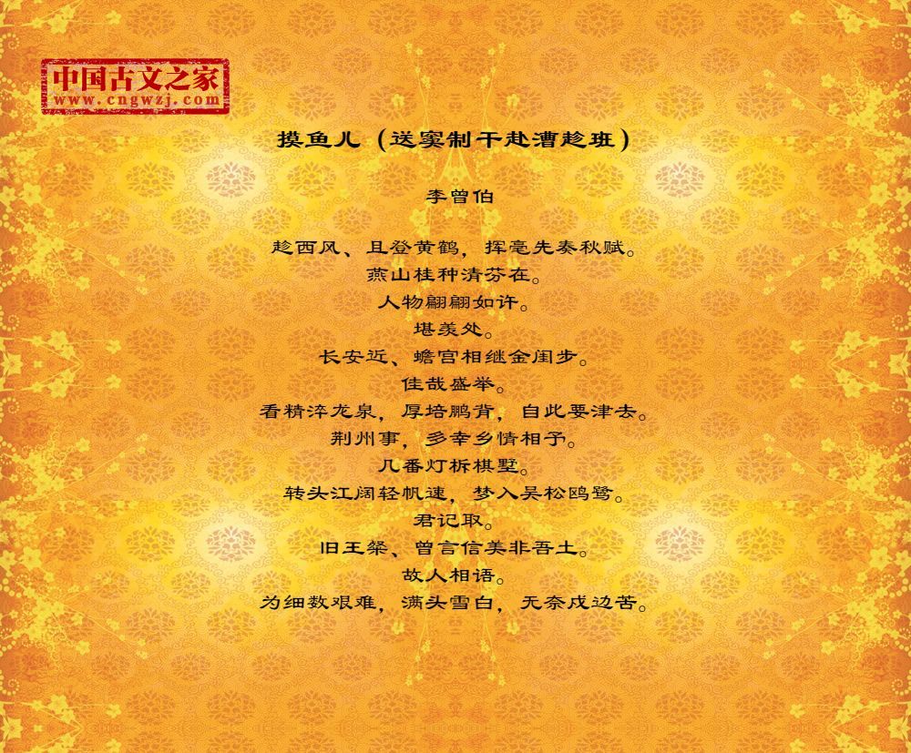 《摸鱼儿(送窦制干赴漕趁班)》的原文打印版(李曾伯)